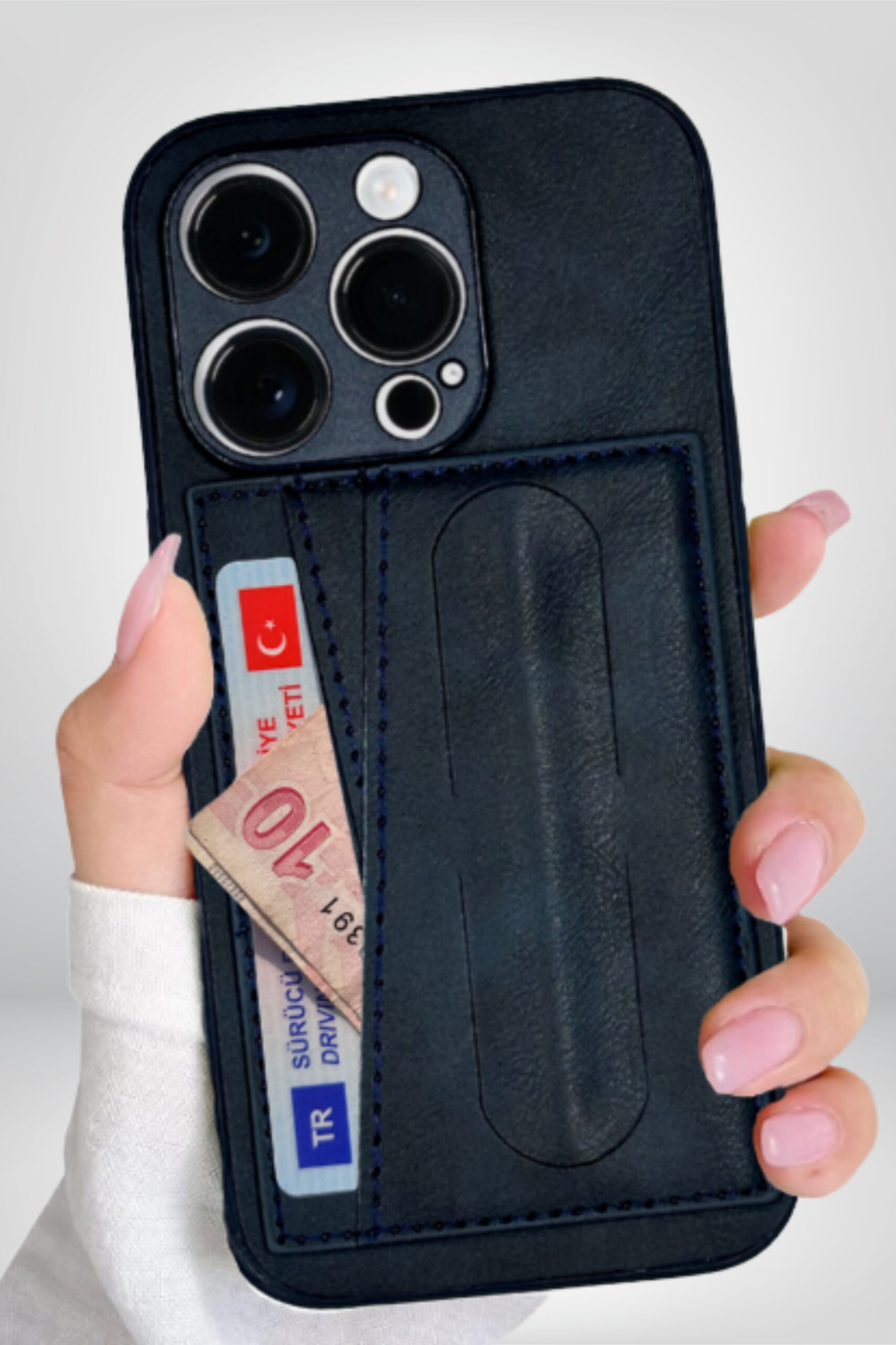 Şıklığı ve fonksiyonelliği bir araya getiren Standlı Deri Kartlıklı Telefon Kılıfı, hem telefonunuzu korur hem de günlük kullanımınızı kolaylaştırır. Yüksek kaliteli deri malzemesiyle üretilmiş olup, modern ve zarif bir görünüm sunar. Entegre stand özelliği sayesinde telefonunuzu yatay pozisyonda sabitleyerek video izlerken veya görüntülü konuşma yaparken konforlu bir deneyim sağlar. Arka kısmında bulunan kart bölmesi, kredi kartlarınızı veya kimliğinizi güvenle taşımanıza olanak tanır.